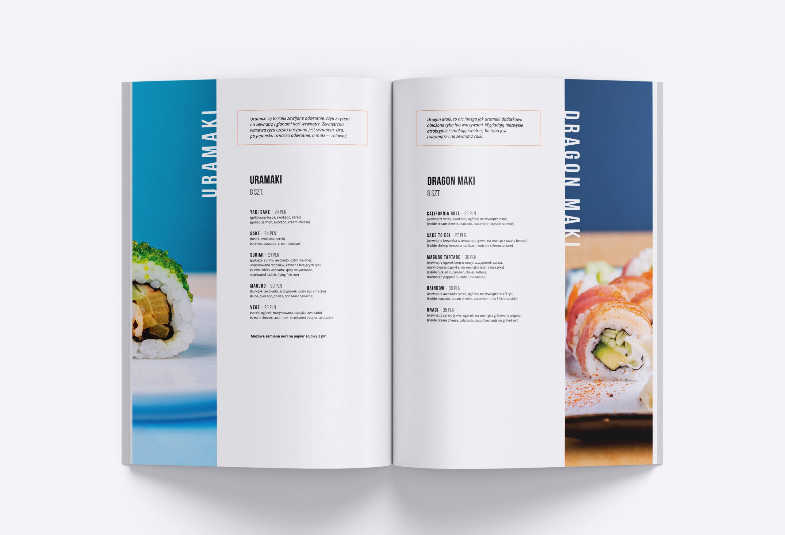 projekt menu dla restauracji